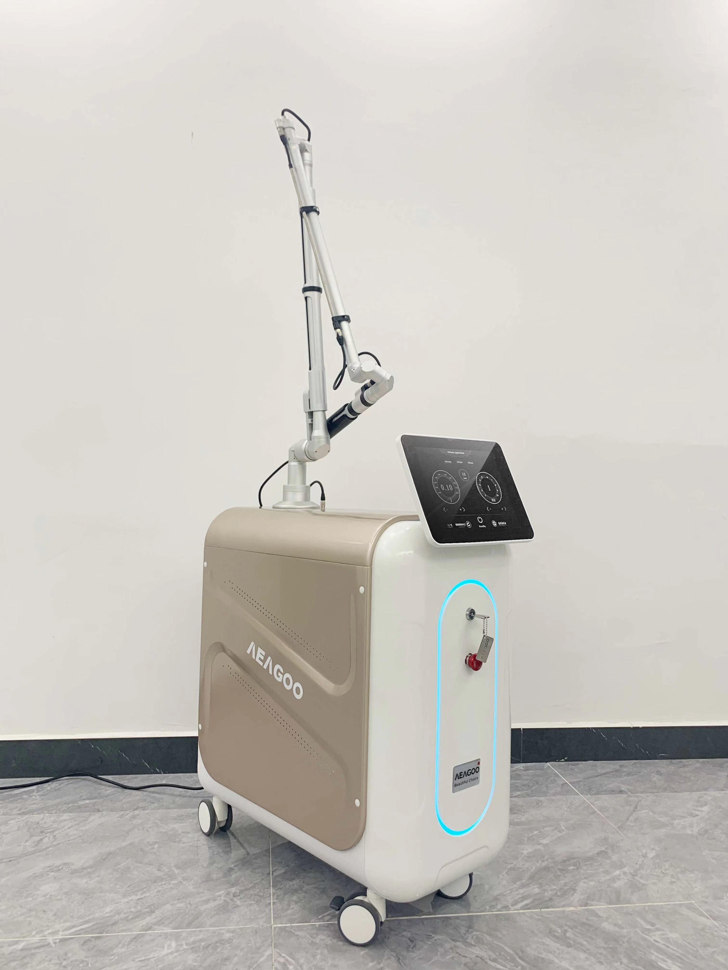 Il modello Eva-ND03 è dotato di quattro testine di trattamento, che emettono diverse lunghezze d'onda, tra cui 1064nm e 532nm e 1320nm e 755nm. Questo lo rende adatto a diversi tipi di pelle e condizioni.